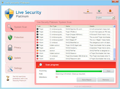 Figure 1. Rogueware called ‘Live Security Platinum’ running on our machine