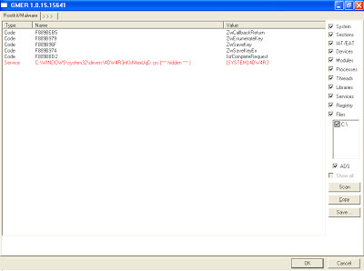 Figure 16. The 4DW4R3 rootkit has also been discovered by GMER