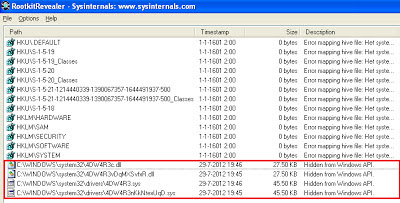 When using Rootkit Unhooker, it notifies us of Possible Rootkit Activity. When reading the log, we see the following lines: